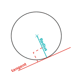 | Page 43, Column 1Angles: Circle RulesThere are 8 rules altogetherThe first 5 were covered on Pages 41 & 42The last 3 rules are covered here:Rule 6: "Radius meets Tangent"The angle between a radius and a tangent must be 90°: