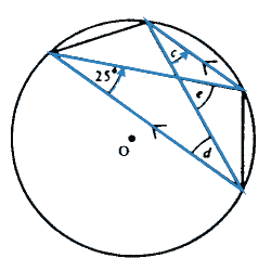 So: d = ...° Using 'angles in a triangle' and then 'angles on a line': e = ...° Note: At each stage you must state a reason (in words) for your answer