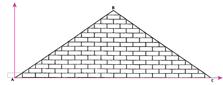 Question 23, part (a): So, what they are really telling us is that each row has one less brick than the row above it... Which means that the left edge of the 1st brick in the 2nd row is placed onto the middle of the 1st brick in the 1st row. Now, imagine you have a set of 'x' and 'y' axes coming out of the top left corner of the 1st brick in the 1st row (I've also add in an imaginary extra brick to the left of the 1st brick):