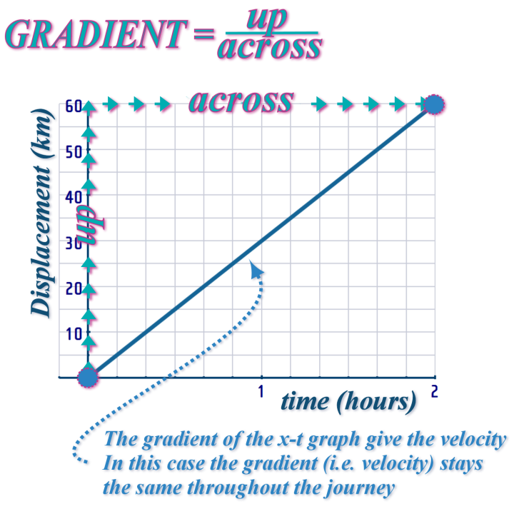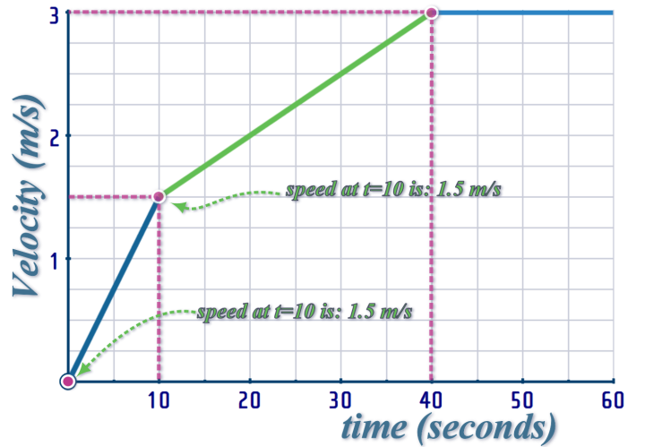 This is steady speed: We can pick the endpoints of this line and find the gradient to give us the velocity.