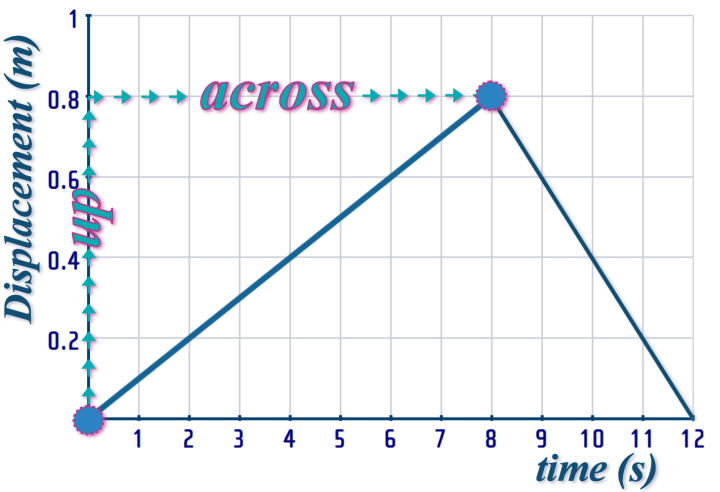 We can use: \(gradient=\frac{UP}{ACROSS}\) to fill in the interval along the \(t\)-axis...