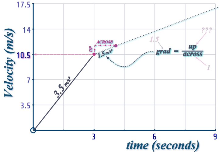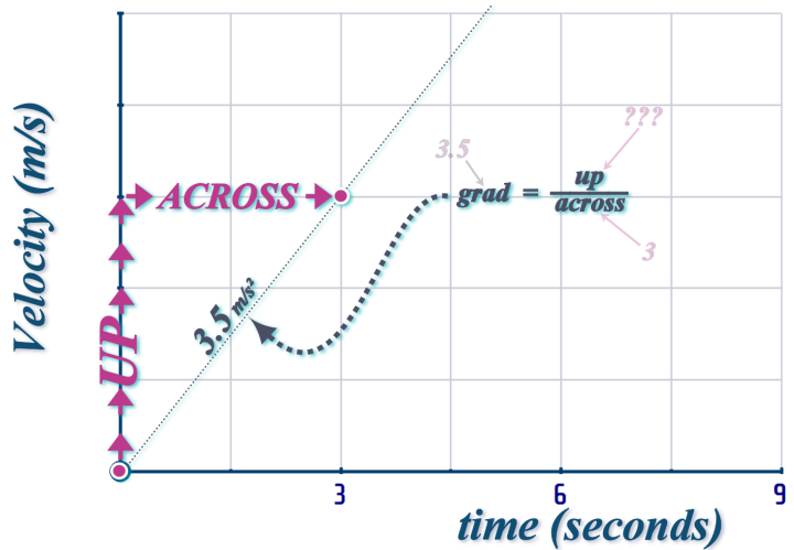 ...on the v-t graph, this is represented with a straight line, \(gradient\,=\,a\), \(UP=v\), \(across=???\)