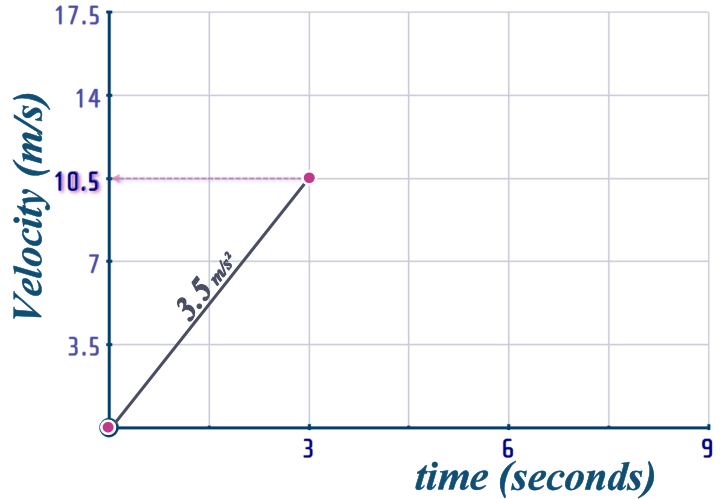 For the cop, we know his acceleration - so we can use the rule: \(\begin{align} Gradient=\frac{up}{across}\,\,\Longrightarrow \,\,10,800&=\frac{up}{\frac{1}{60}}
