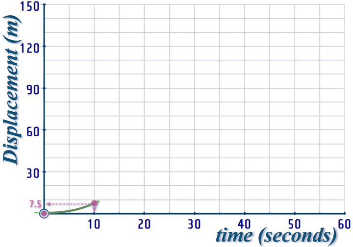 Interval 3: The object is travelling in the opposite direction with a speed of \(...\) m/s for \(20\) seconds. During that time, the displacement is \(-250\) m