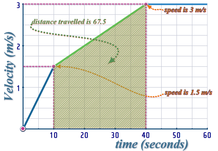 On our v-t graph, we can show everyone that we KNOW the distance travelled during this journey: