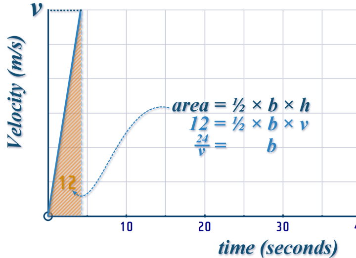 ...on a v-t graph, this is represented with a straight line, and the are under the graph is \(12\)