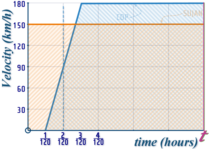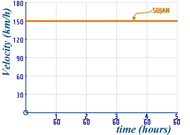 Lets start with the v-t graph of the speedy Gonzales - Sujan - that's easy, it is just steady speed at \(150\) km/h for the entire time...